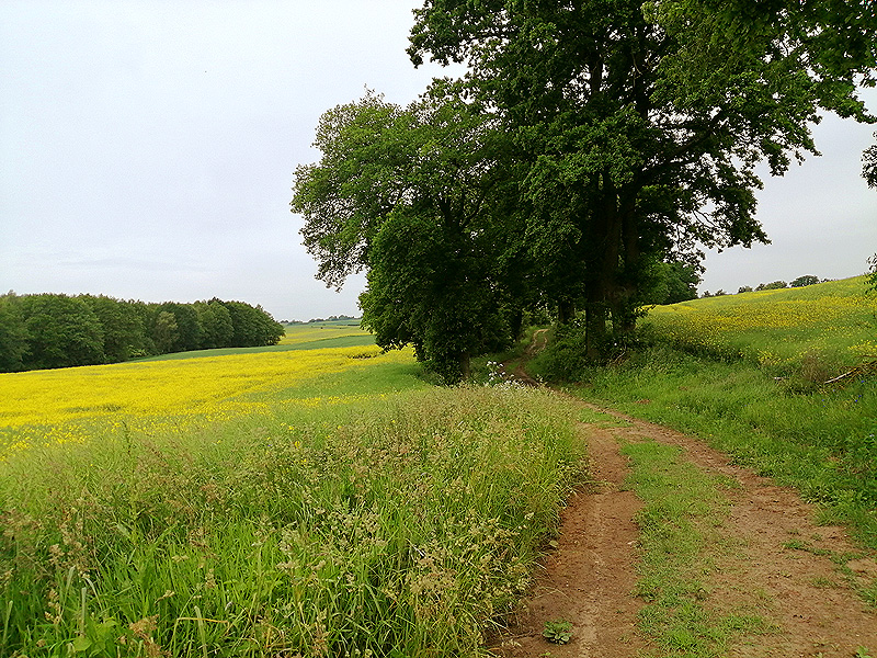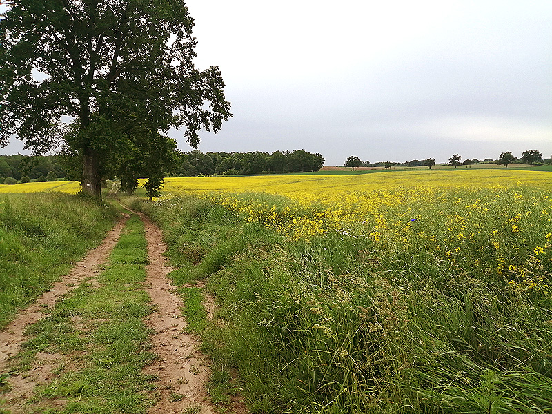 Polne dróżki jak zwykle malownicze wśród pól i łąk. Na leśnych drogach znowu trochę błota.
