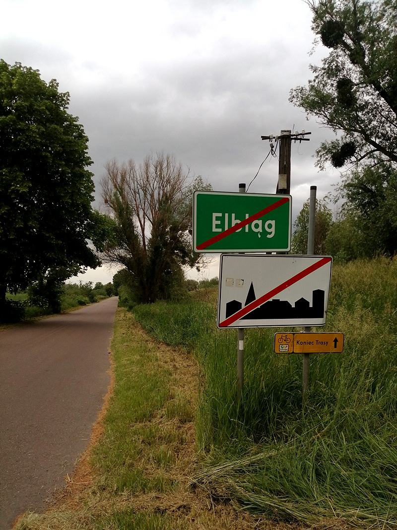 W Elblągu na 55.5 km tego dnia początek szlaku GreenVelo (dla mnie początek; na tablicy pisze „koniec”).