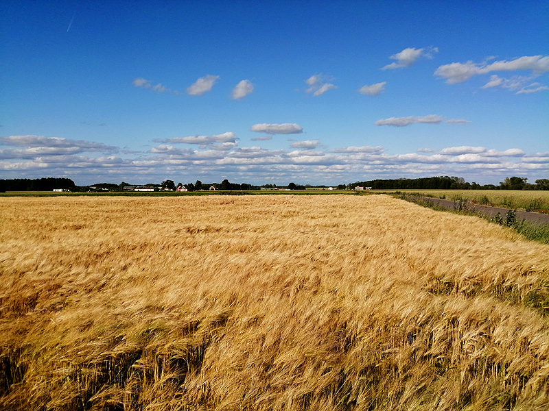 Podlasie to obszary rolnicze, więc droga prowadzi też pomiędzy polami. Koniec czerwca i pierwsze zboża na polach zaczynają się już złocić, a kukurydza dopiero wschodzi. Dojrzewają pierwsze owoce: czereśnie, wiśnie, porzeczki. W gorące dni bardzo się chce jakiegoś świeżego owocu a przy suchym, często konserwowym prowiancie świeże witaminki też są pożądane. Pozwoliłem sobie więc czasem na „skorzystamie” z takiej „oferty” z sadu czu uprawy, ale często drzewa owocowe rosną jako drzewa przydrożne i można korzystać legalnie.